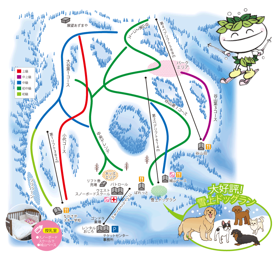 A cozy and welcoming ski resort featuring well-maintained carving slopes, powder snow zones after fresh snowfall, and various areas such as a kids’ zone and a practice area for beginners. With its fam......more details in planpage