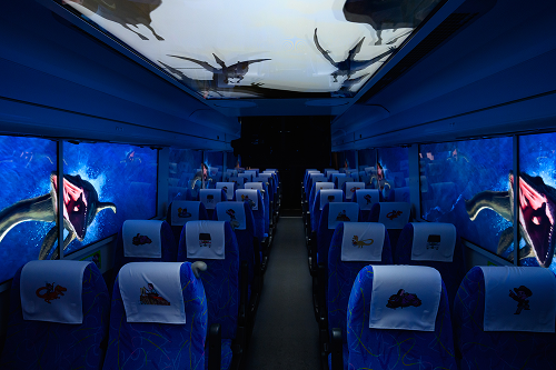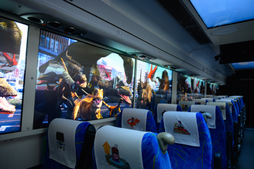 福井県が誇る四季折々の美しい風景や伝統文化、歴史、そして恐竜…。そんな福井の魅力を拡張現実(AR)・仮想現実(VR)映像で車窓に映し出し、通常の観光バスでは得られない、臨場感あふれる仮想空間体験を提供します。VRゴーグルやタブレットなどの周辺機器は必要ありません。どなたでも気軽に“見る・感じる・楽しむ”新しい移動体験をお楽しみいただけます。乗客の皆様はバスに座っているだけで気軽に体験することができます!ワクワクする新感覚を、福井で体験してみませんか?